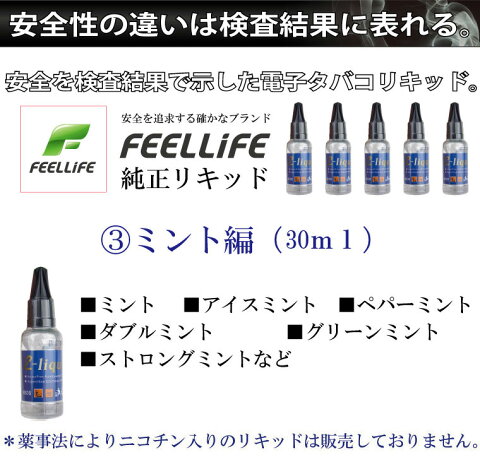 プルームテック 対応 電子タバコ リキッド 【メール便選択で送料無料】 VAPE ベープ 電子たばこ 電子煙草 ベイプ プルームテック対応 禁煙グッズ Feellife 30ml ミント編 フィールライフ メンソール ミント味 お徳用 大容量 ギフト プレゼント