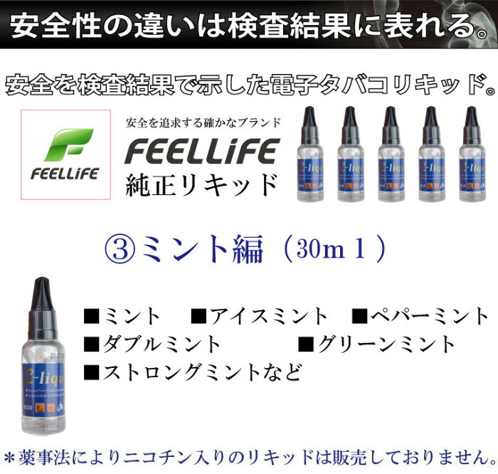 電子タバコ用リキッド Feellife 30ml ミント編 の解説 手頃な価格でしっかりとした品質の電子タバコリキッド。