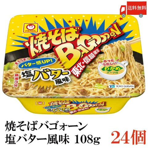 【商品説明】マルちゃん 焼そばバゴォーン 塩バター風味 108g×2箱【24個】 「焼そばバゴォーン」の世界観を踏襲しつつ、まろやかな味わいがおいしいカップ焼そば。